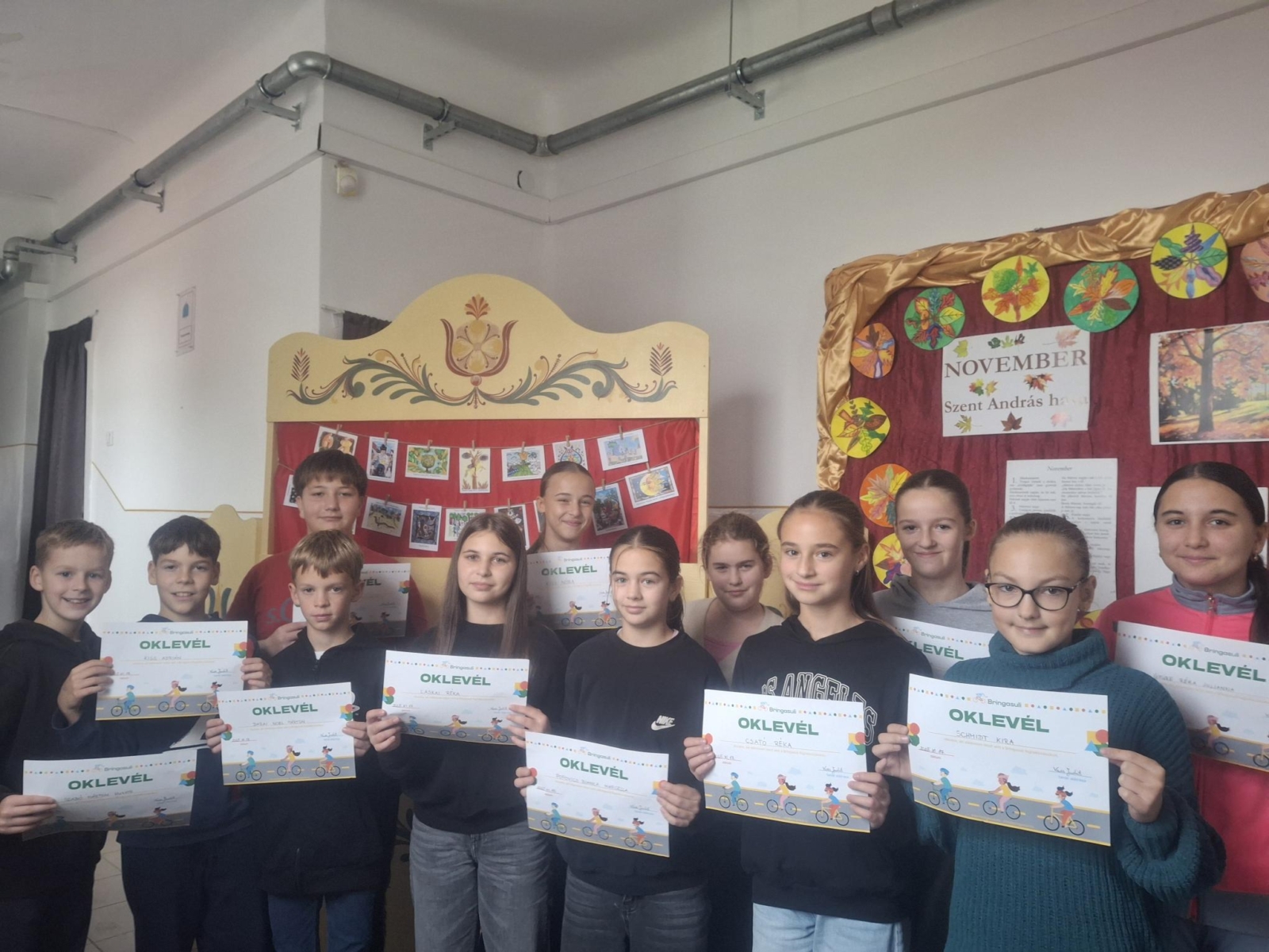 Iskolánk idén ősszel csatlakozott a Bringasuli programhoz, mely az Aktív Magyarország támogatásával valósulhatott meg. A képzésre 12 fő jelentkezett az 5. és 6. osztályból. A szeptembertől novemberig tartó foglalkozások során a gyerekek elméleti és gyakorlati képzésen vettek részt. Megismerkedtek a kerékpár kötelező tartozékaival, az indulás előtti ellenőrzés folyamatával, a KRESZ alapjaival és játékos formában fejlesztették kerékpáros ügyességüket. A tanulók az iskola környéki kis forgalmú utcákban próbálhatták ki frissen szerzett tudásukat. Gyakorolták a szabályos elindulást, megállást, kanyarodást, kikerülést és a forgalomban való magabiztos közlekedést. A program végén minden résztvevő oklevelet és kitűzőt vehetett át a Bringasuli elvégzéséért. Gratulálunk nekik!