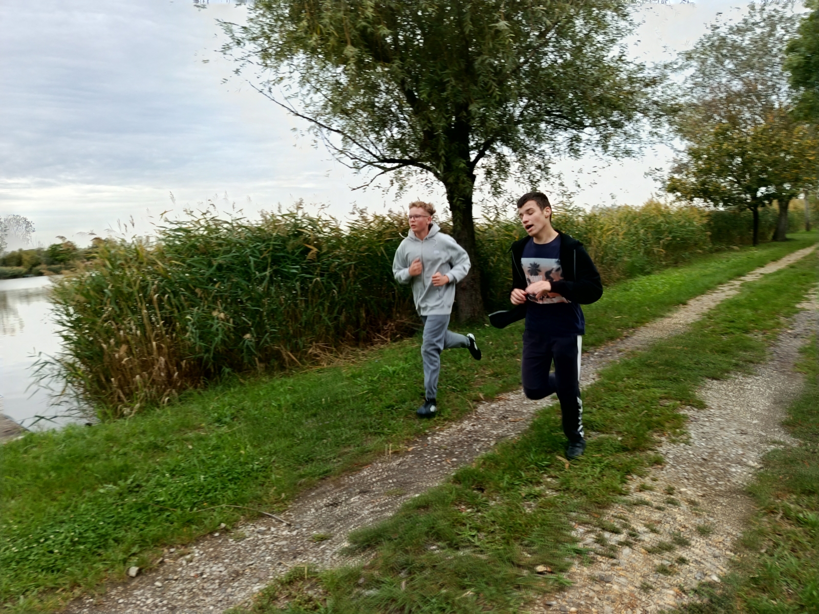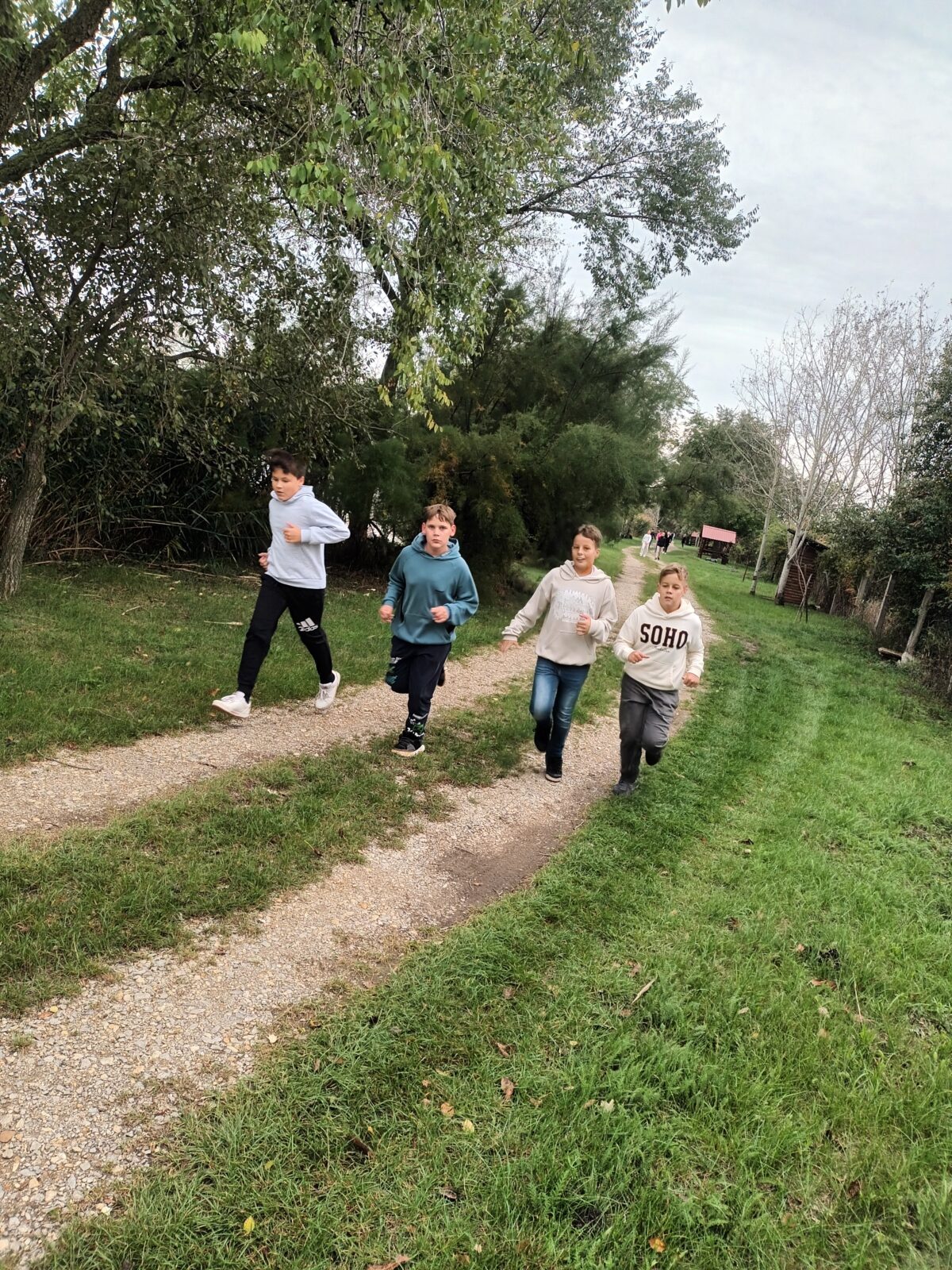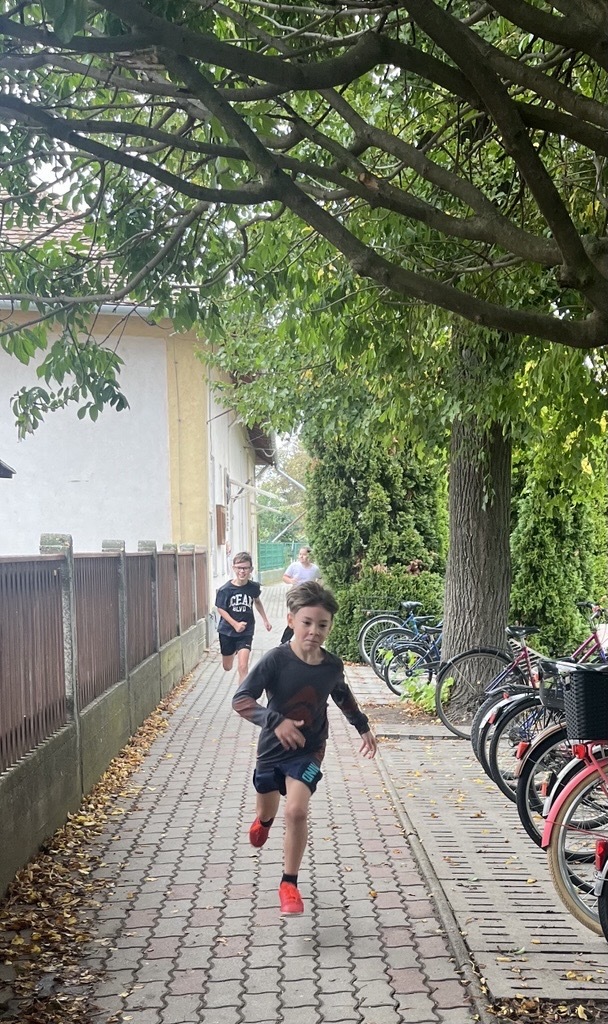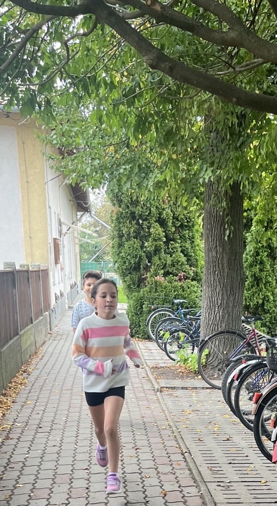 Az alsó tagozatosok zenés gimnasztikával indították a sportos programot, ami nemcsak átmozgatta őket, hanem megalapozta a jó hangulatot is. Ezután lelkesen és mosolyogva futottak két kört a templom körül.