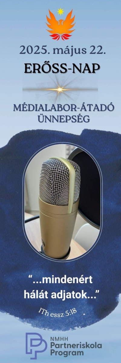 Az újonnan kialakított és jól felszerelt médialabor átadása ünnepélyes keretek között zajlott 2025. május 22-én, az Erőss-napon. Ekkor adtuk át az újonnan kialakított tereket, és ezen a napon készült az első interjú a hangstúdióban a Nemzeti Média- és Hírközlési Hatóságtól érkezett vendégeinkkel: dr. Somogyi Ákossal, dr. Varga Árpáddal és Lajtos Ádámmal.